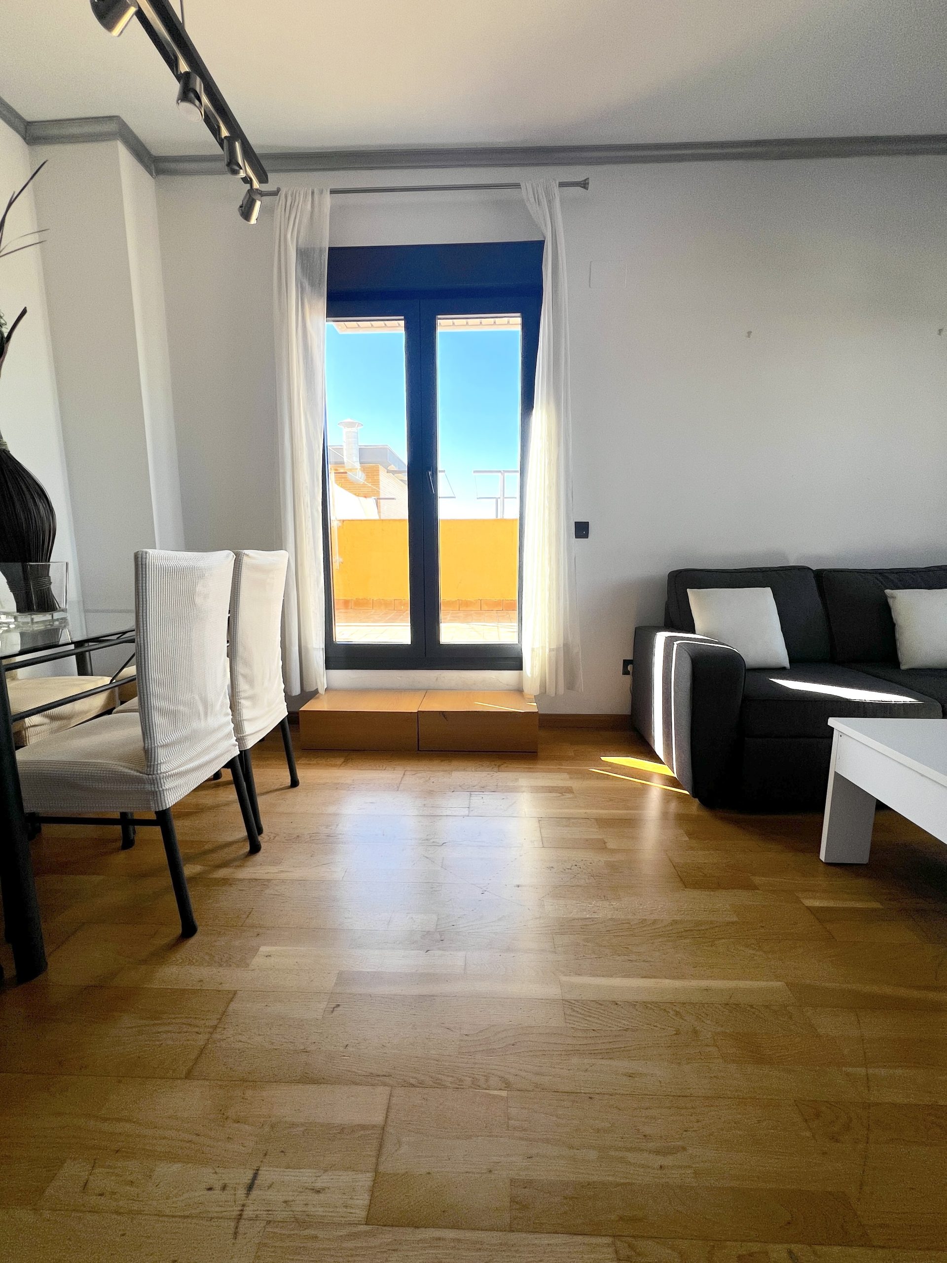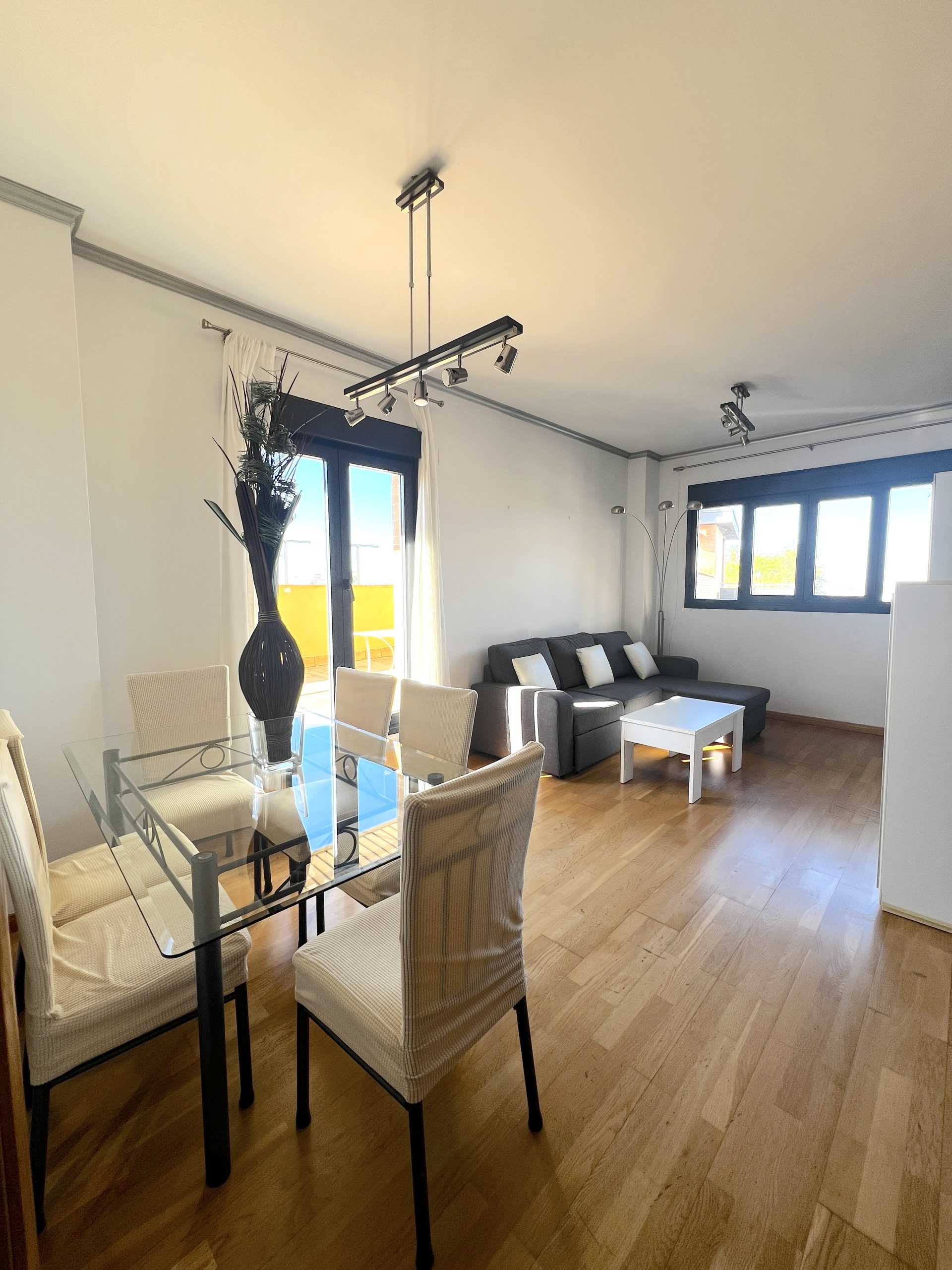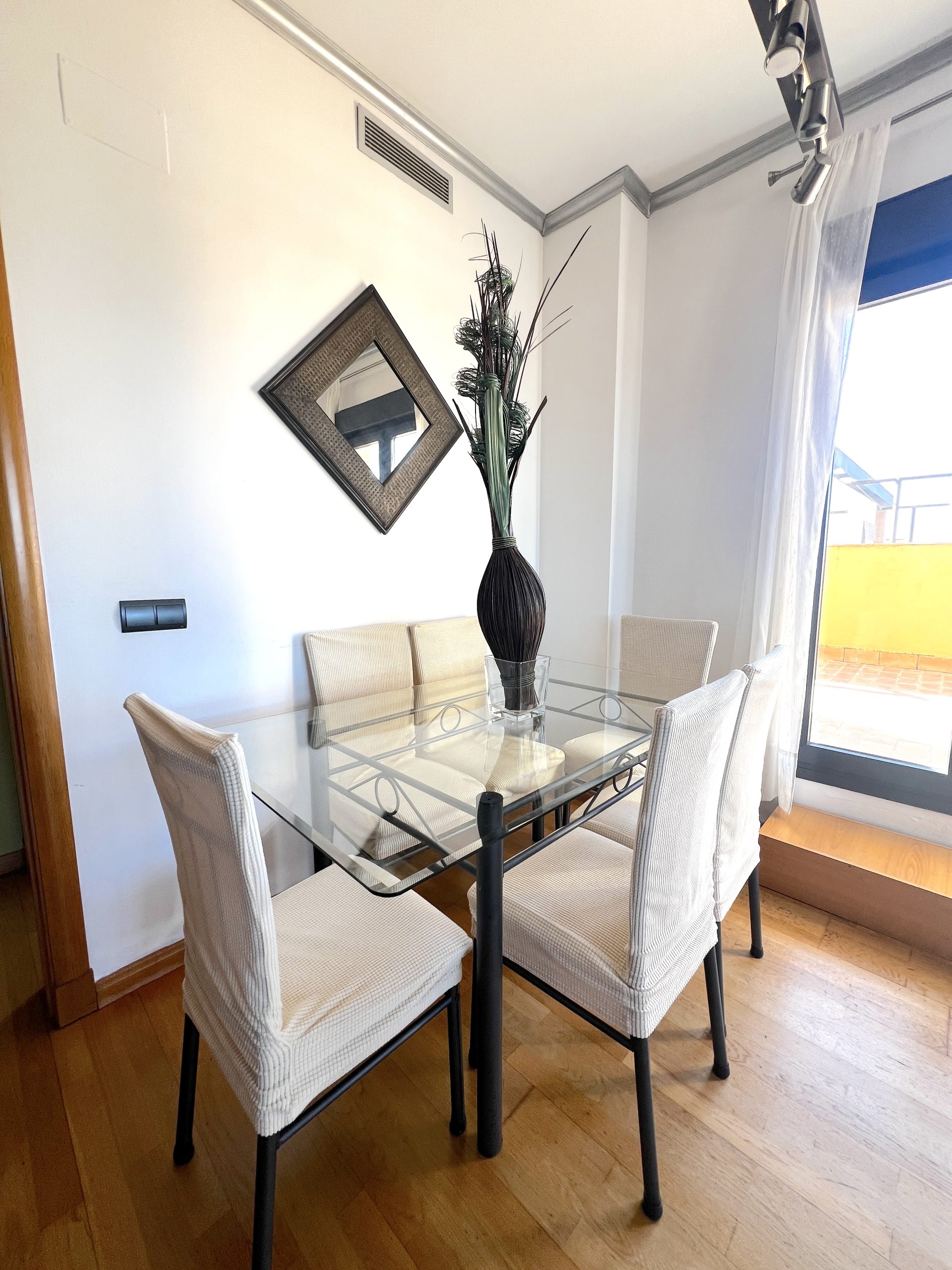 La vivienda destaca por su impresionante terraza tipo ático con espectaculares vistas panorámicas a la Ría de Huelva, vistas que también se disfrutan desde ambos dormitorios y desde el salón. El salón, amplio y luminoso, cuenta con espacios diferenciados para zona de descanso y comedor, con acceso directo a la terraza, creando un ambiente perfecto para disfrutar del exterior y de las vistas.