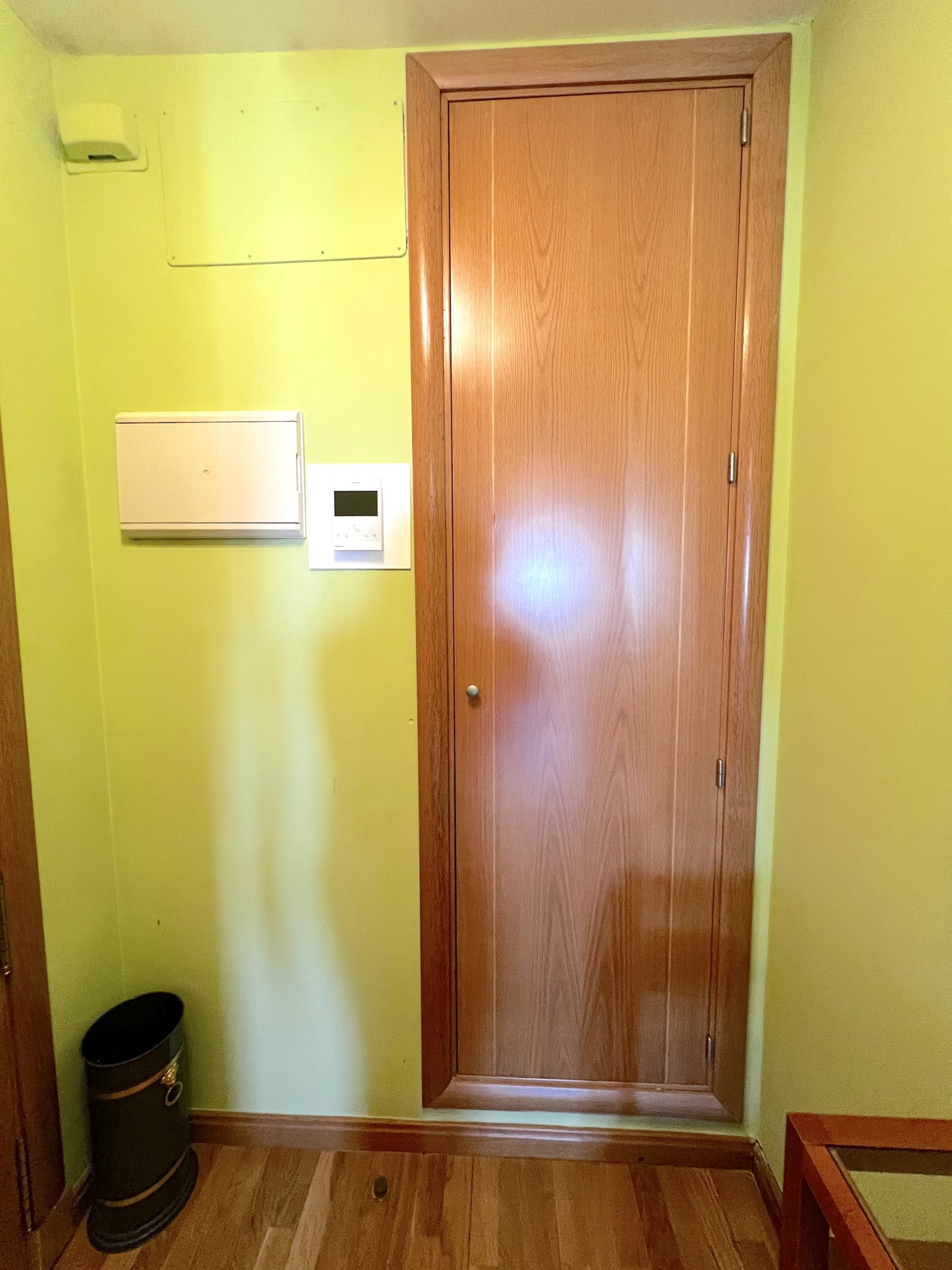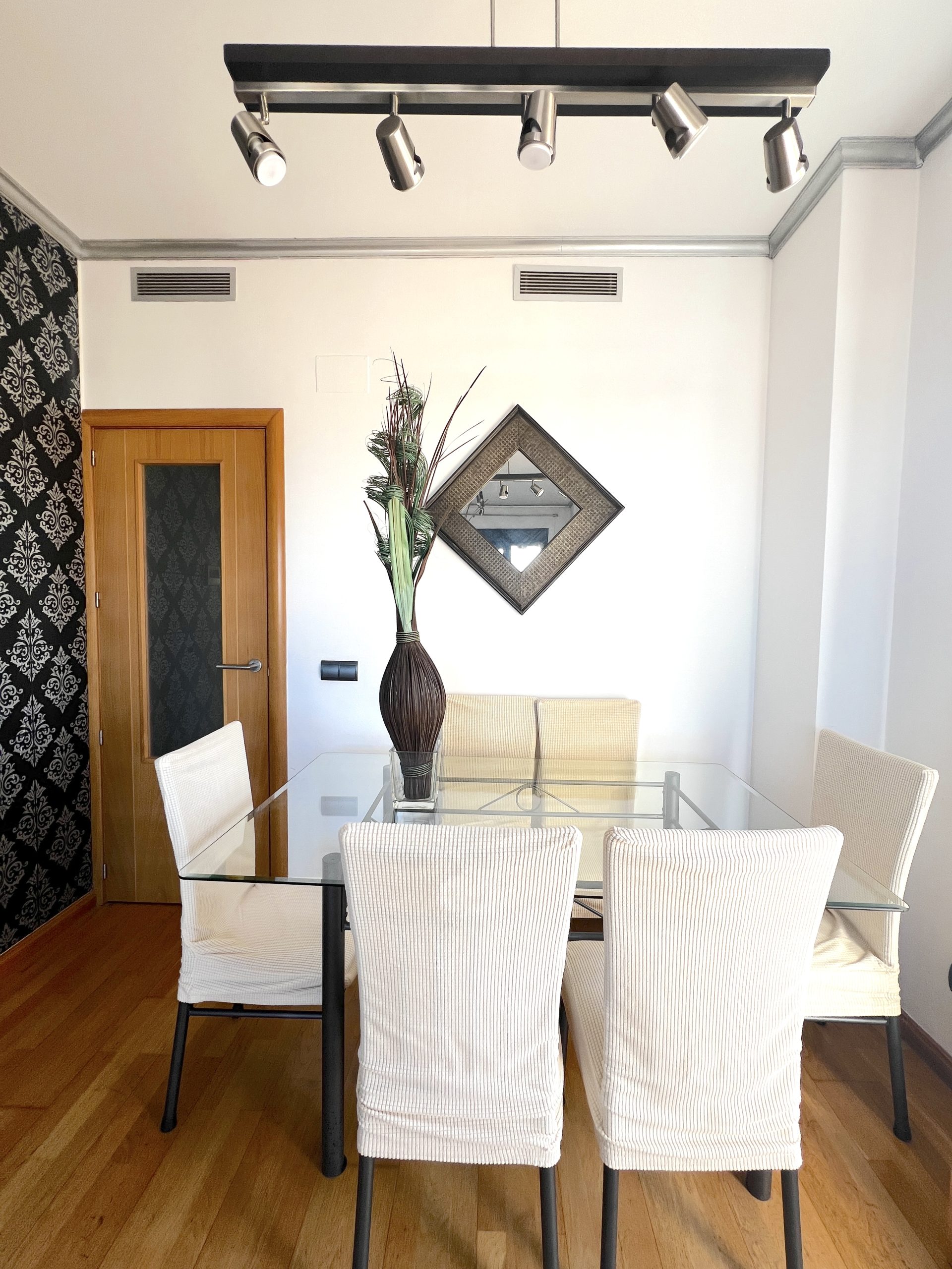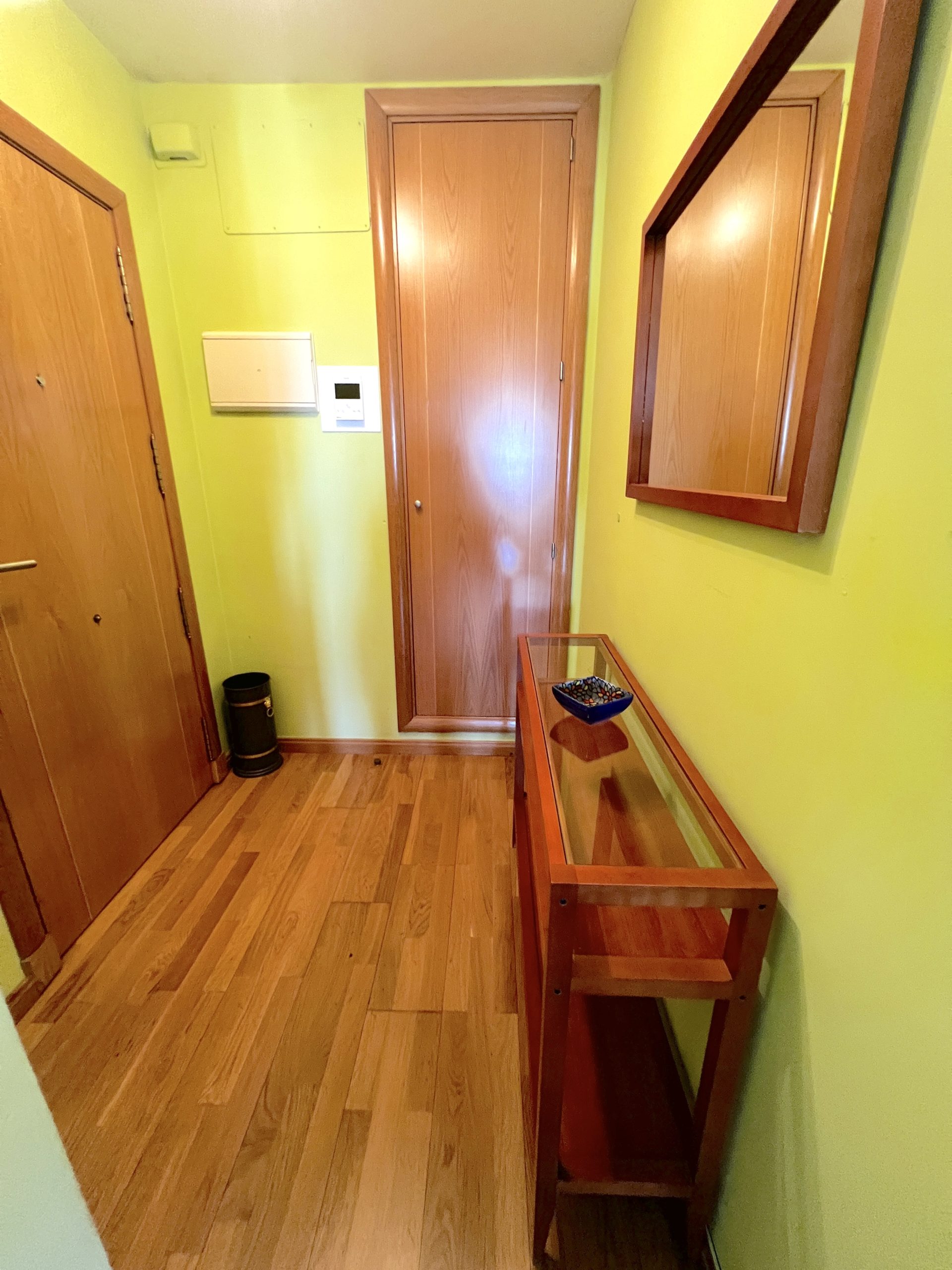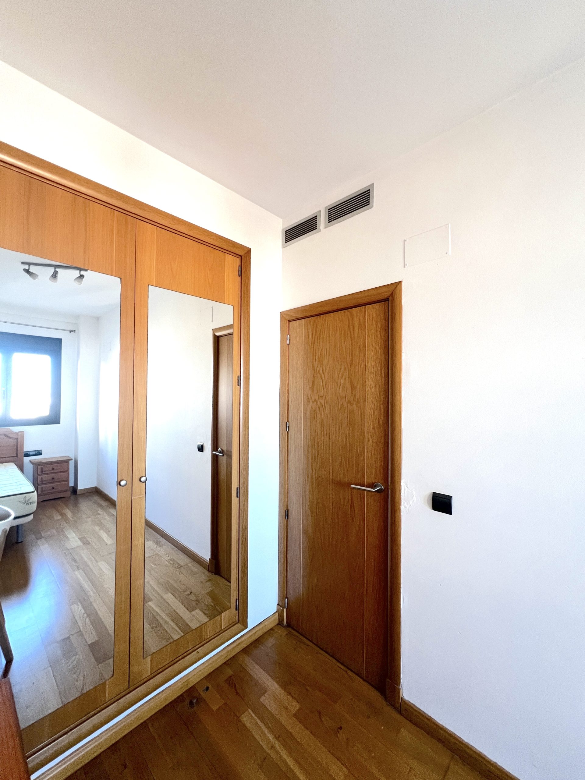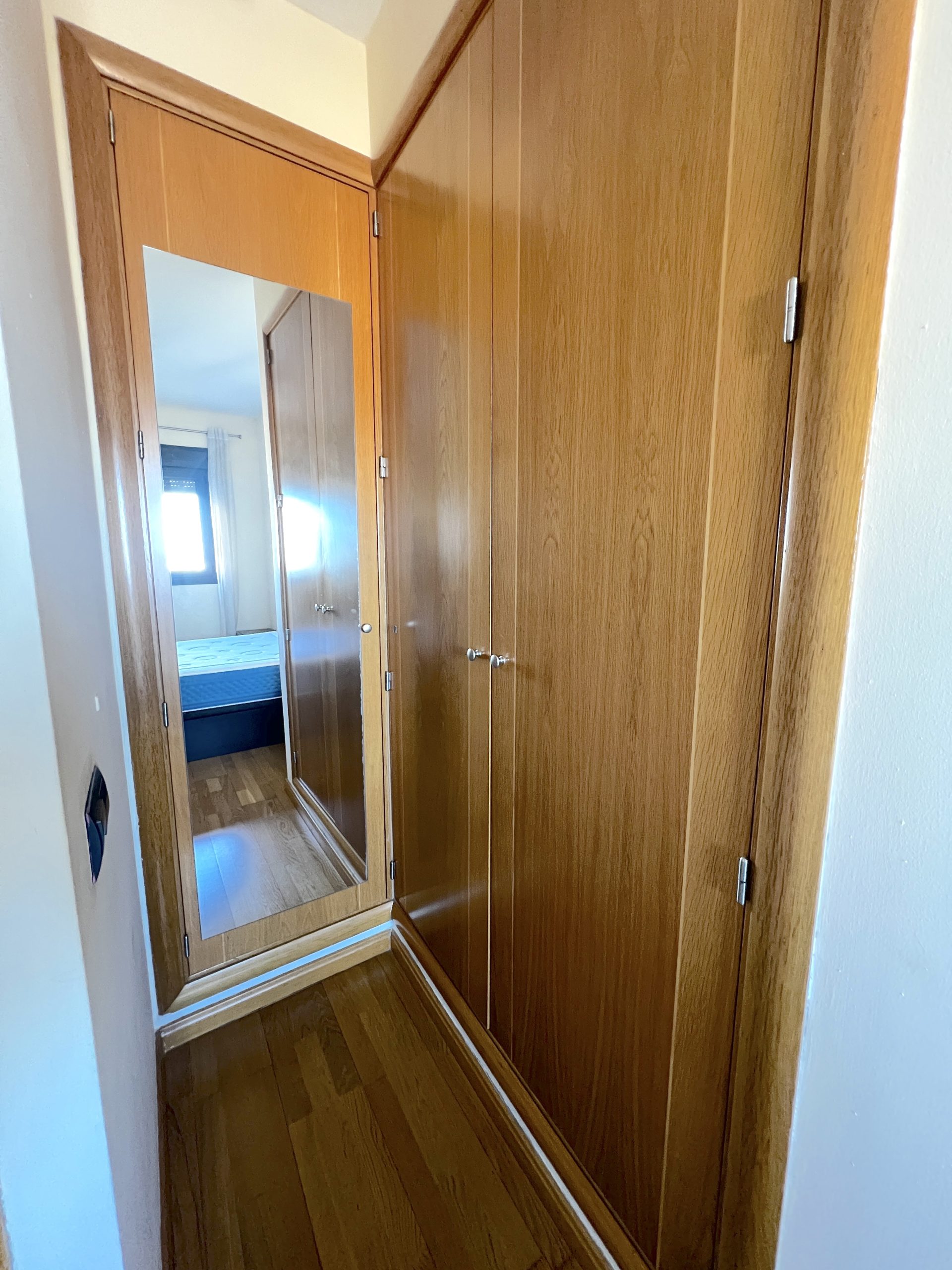 En el recibidor y pasillo encontramos armarios empotrados totalmente forrados, así como en los dos dormitorios (el principal con dos armarios empotrados), ofreciendo gran capacidad de almacenamiento. La vivienda dispone de aire acondicionado y calefacción centralizada.
