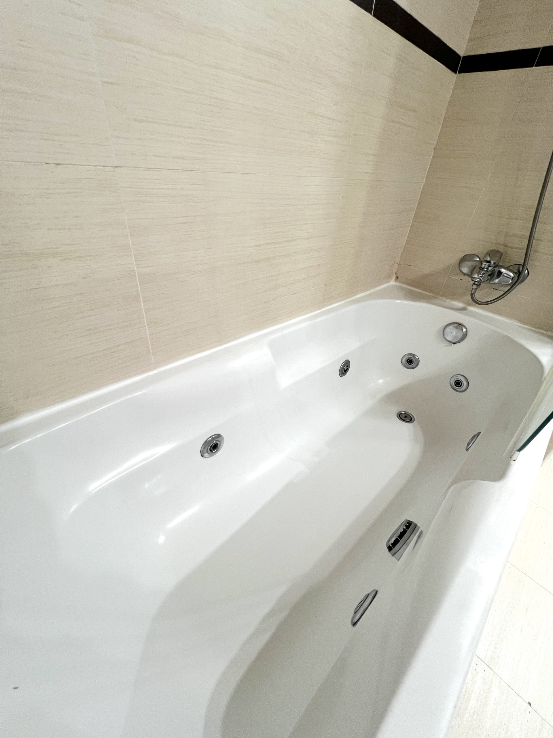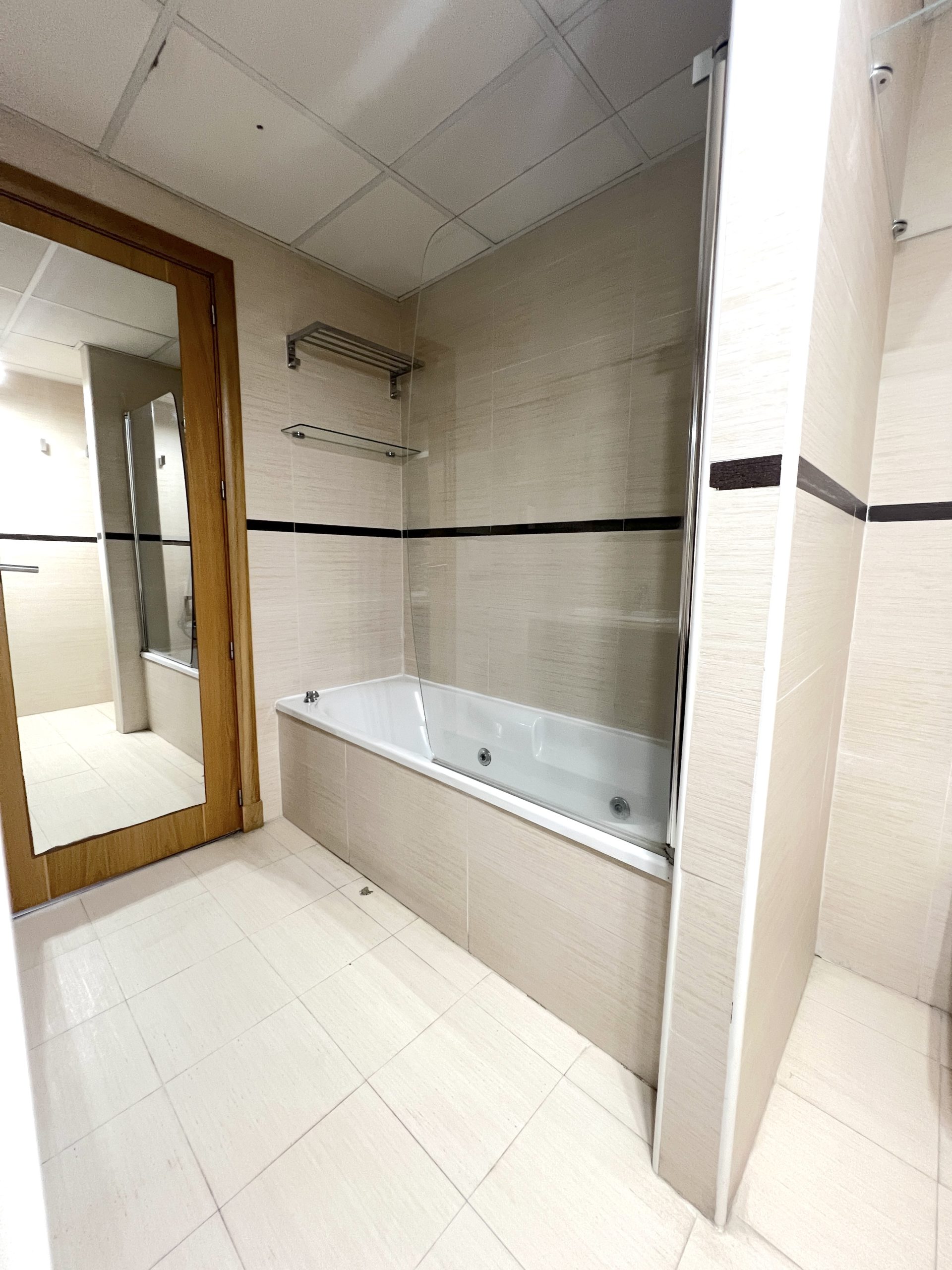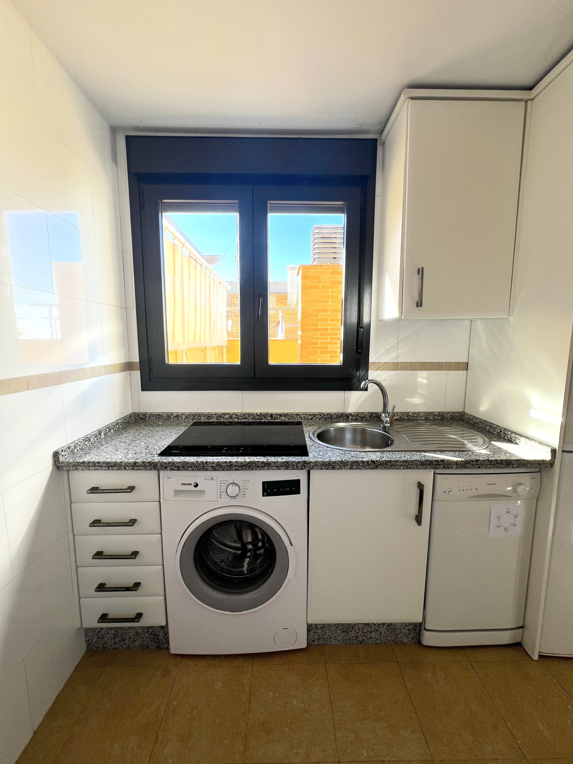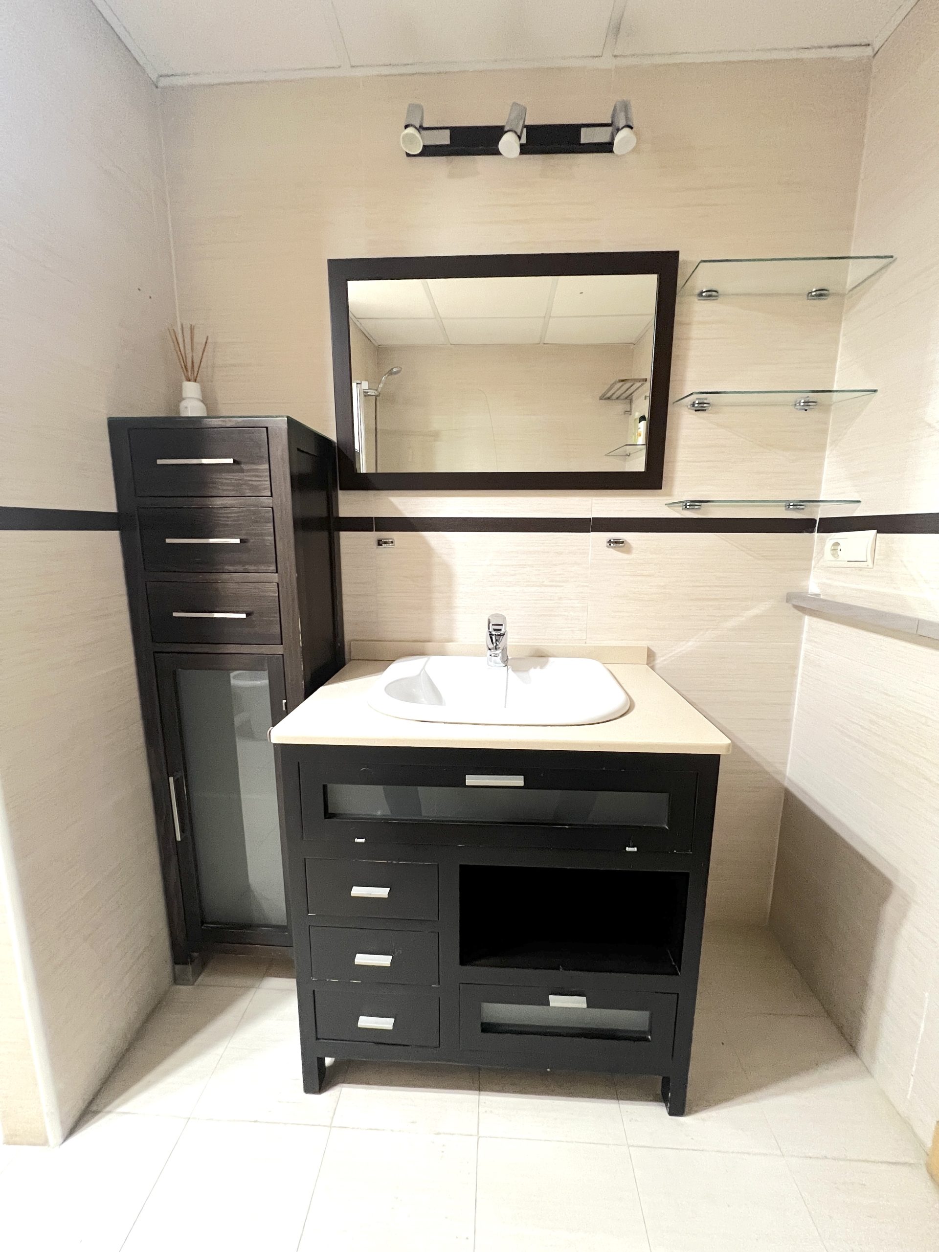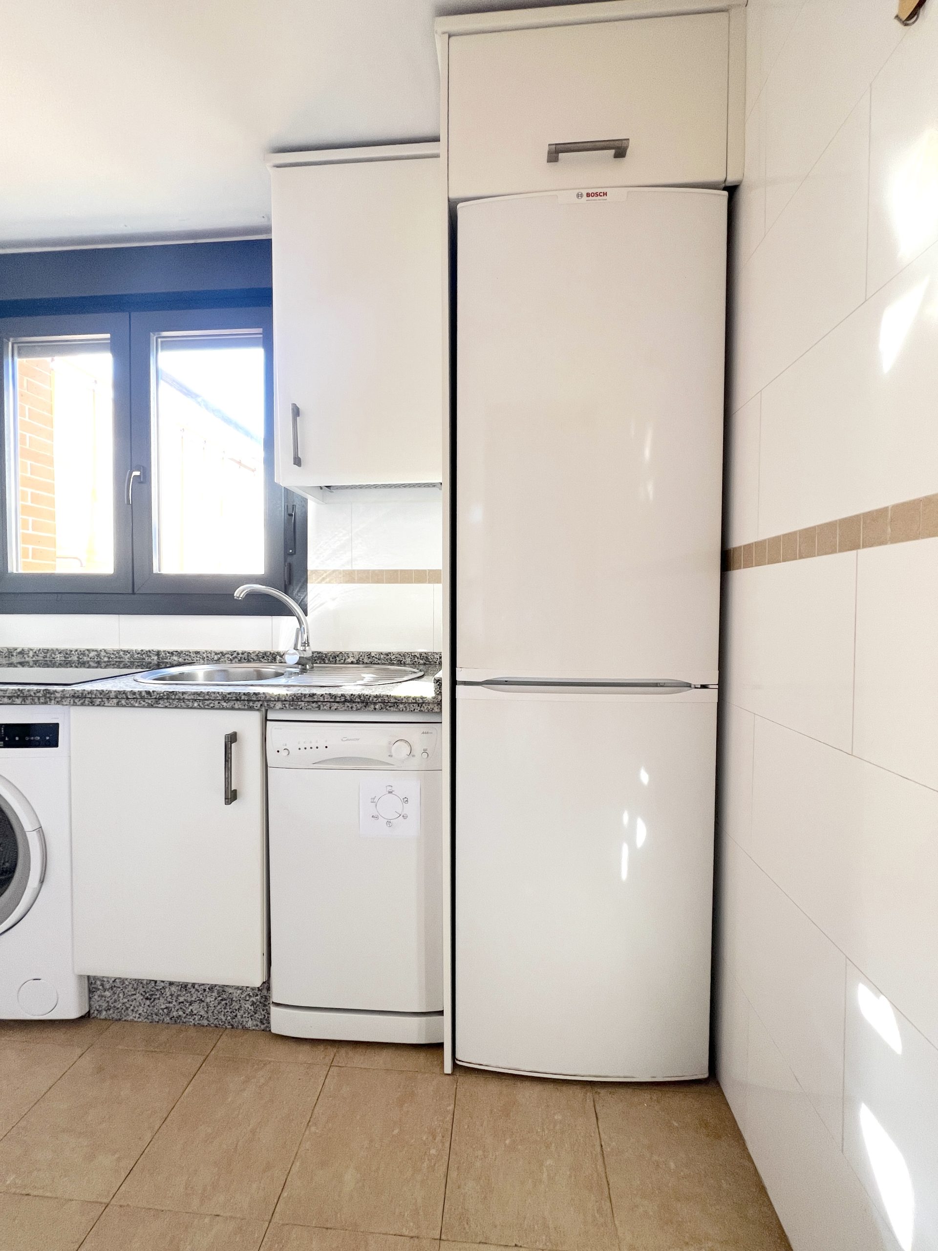 La cocina, funcional y bien distribuida, dispone de acceso a una gran despensa, ideal para almacenamiento adicional. El baño, amplio y elegante, incorpora bañera de hidromasaje para tu confort.