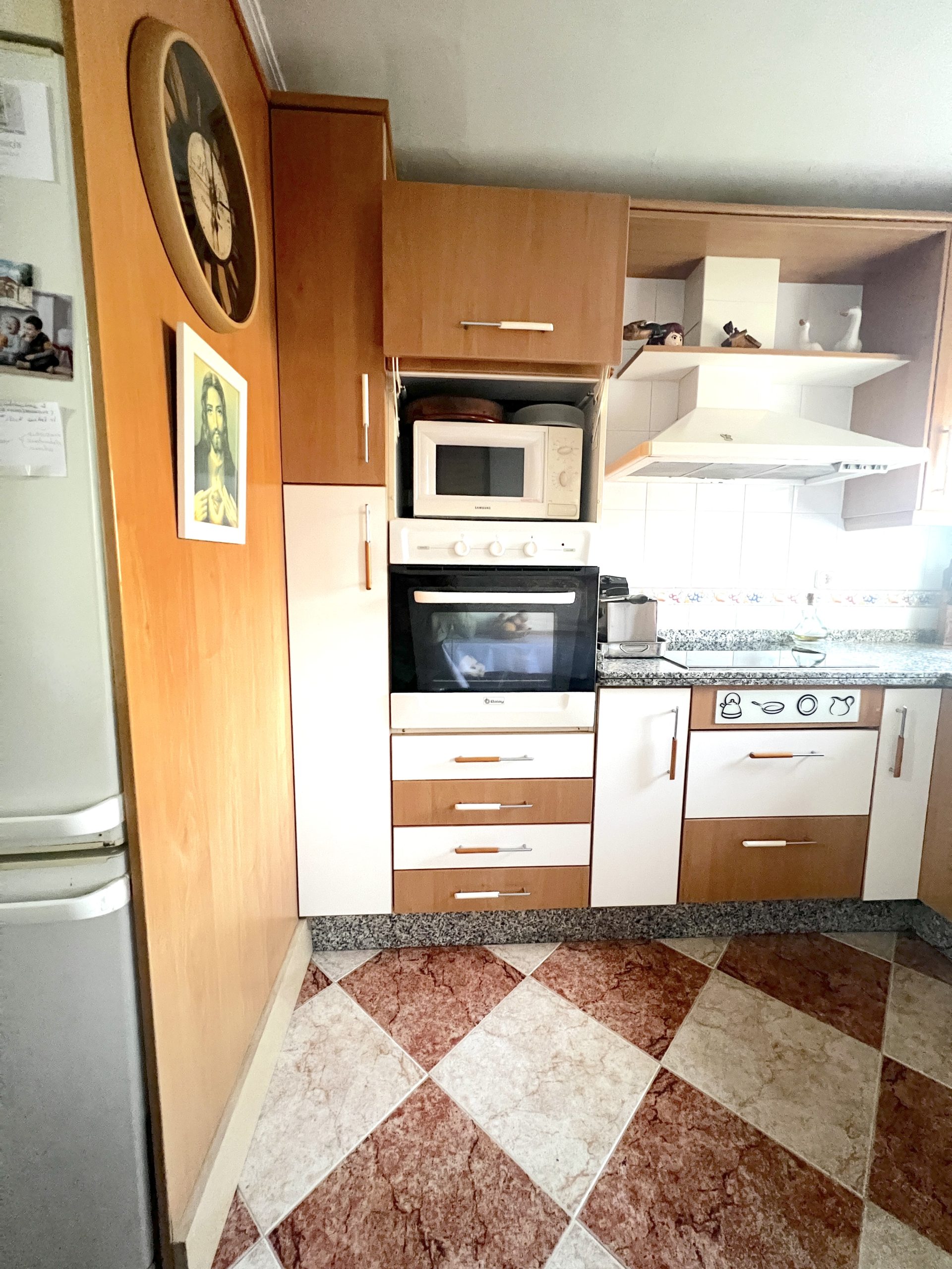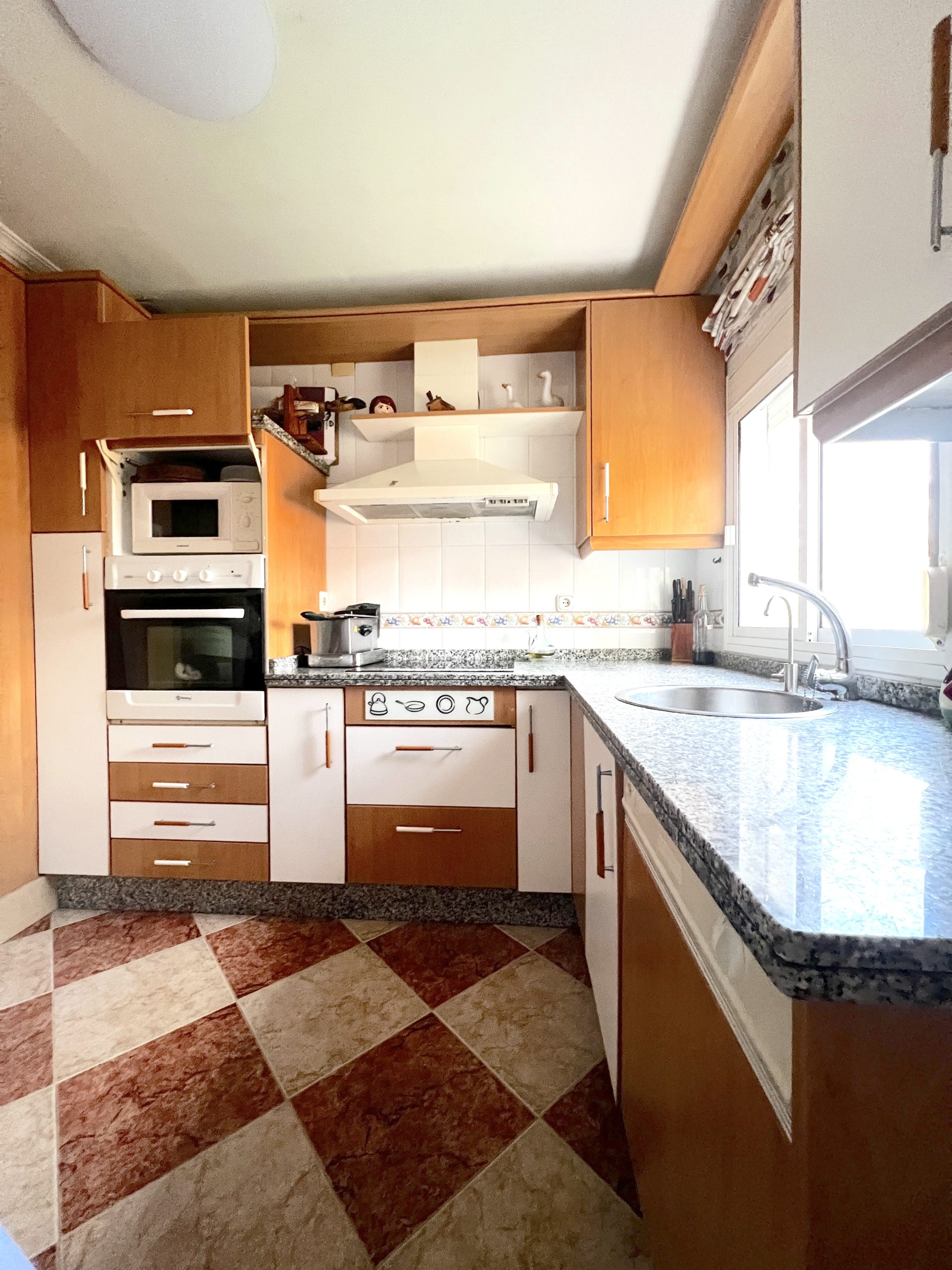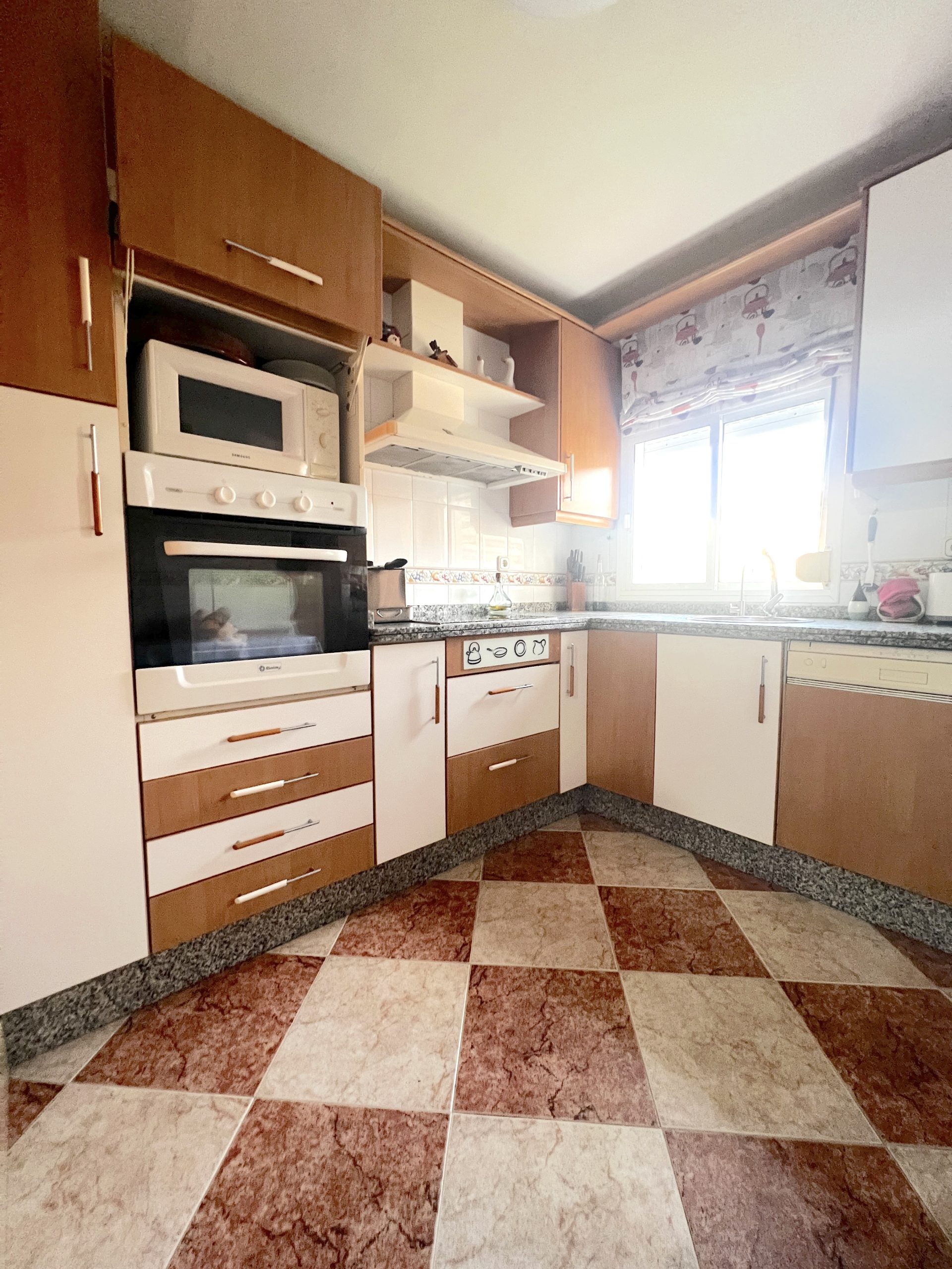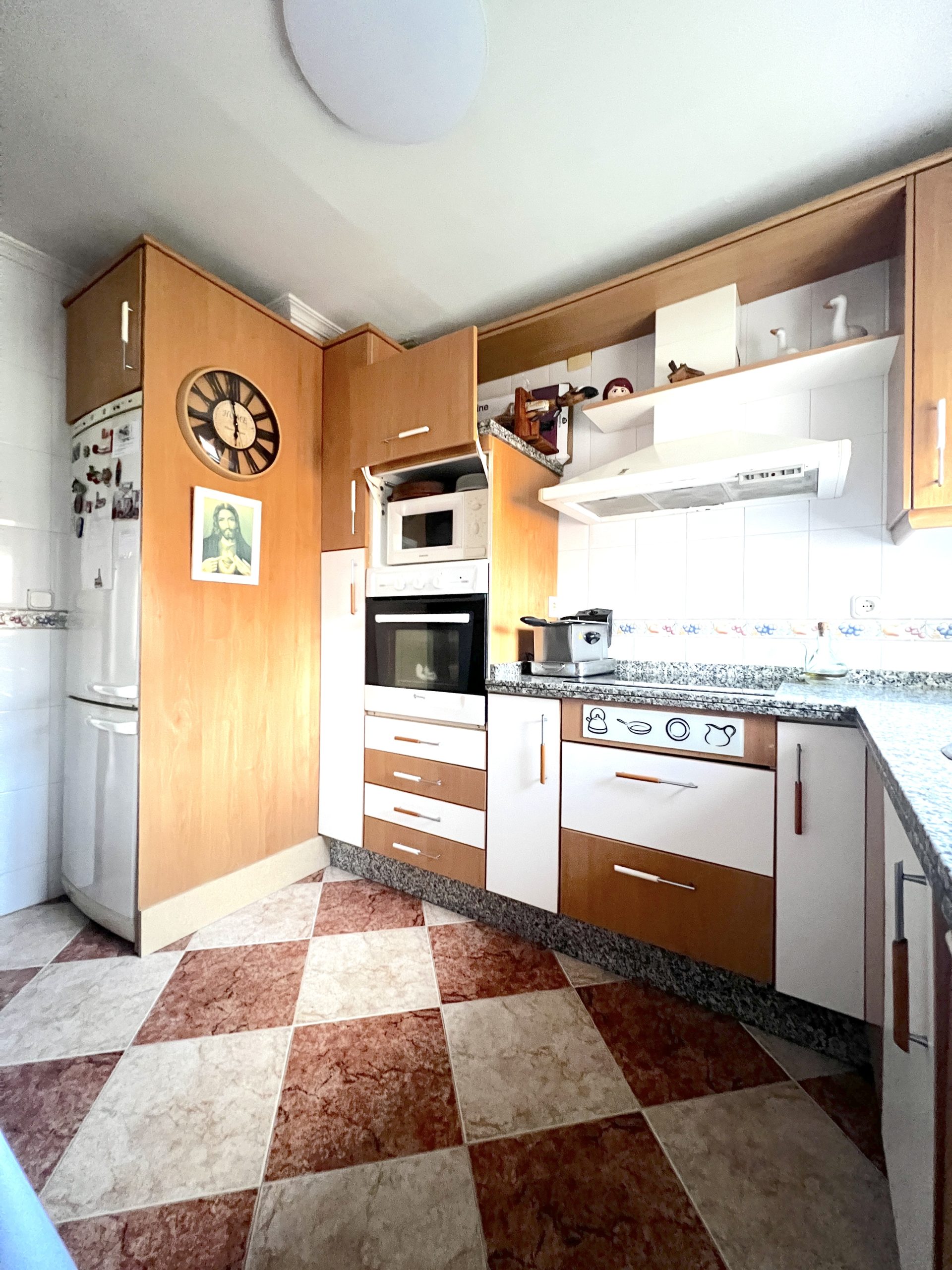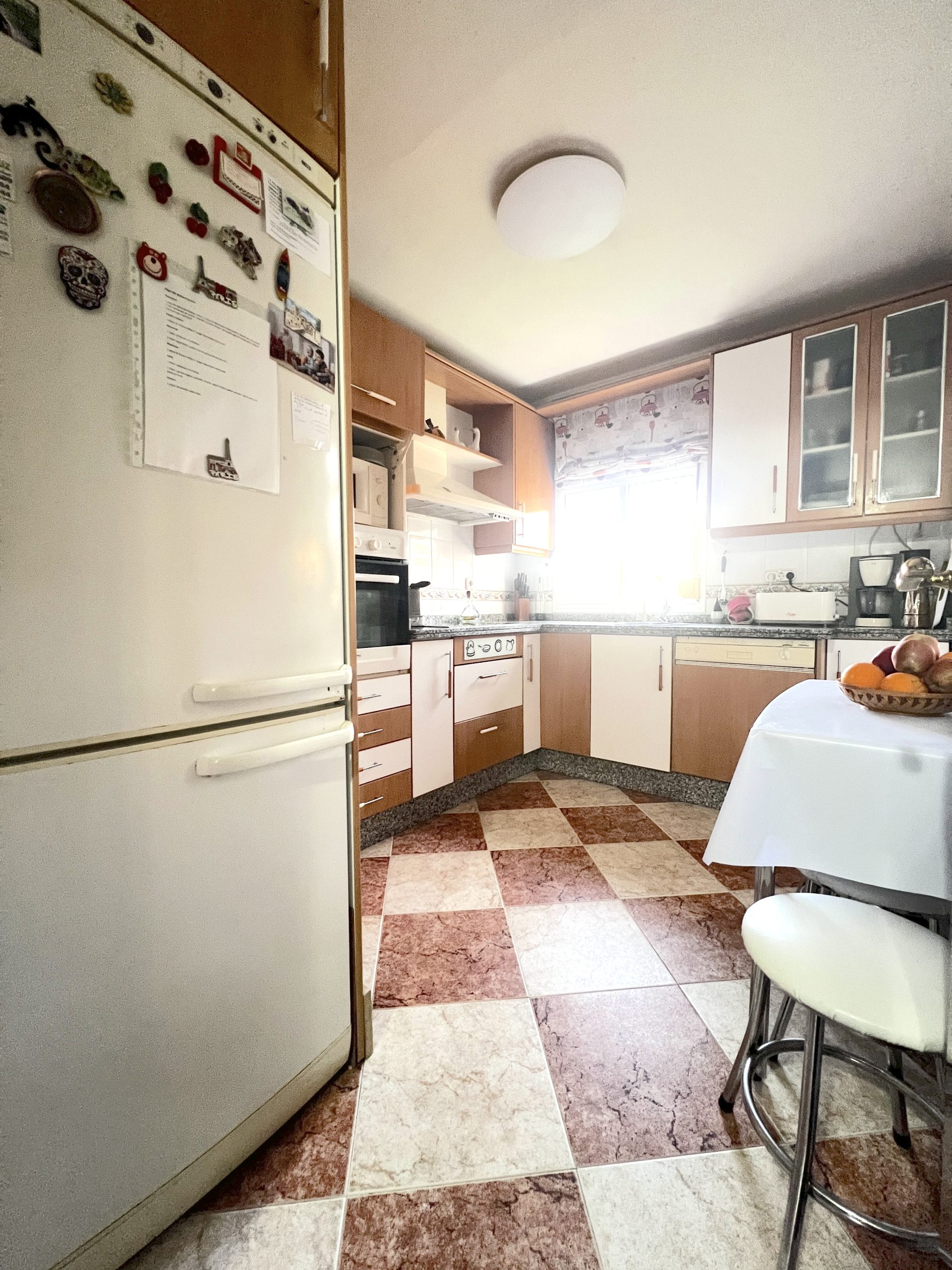 La cocina, espaciosa y funcional, cuenta con gran capacidad de almacenaje y espacio suficiente para todo tipo de electrodomésticos. Desde ella se accede a un cuarto lavadero, muy práctico para el día a día.