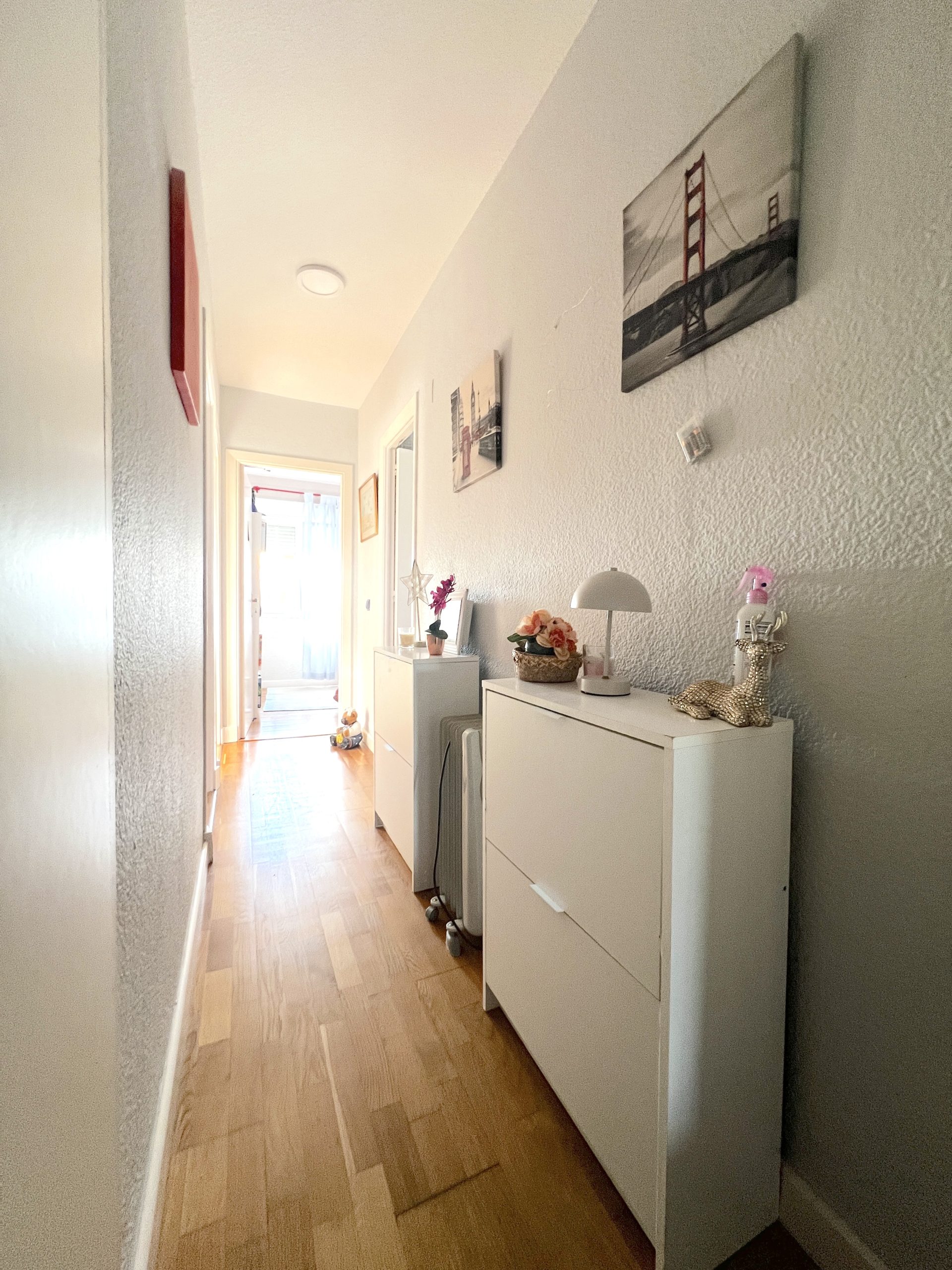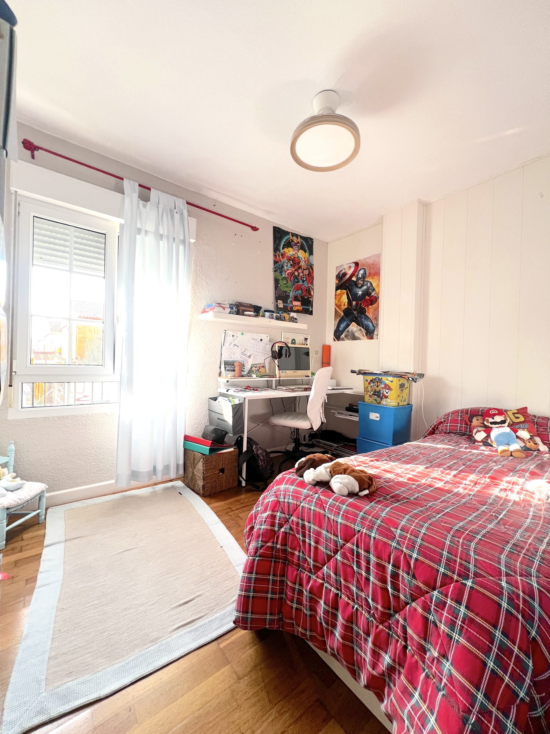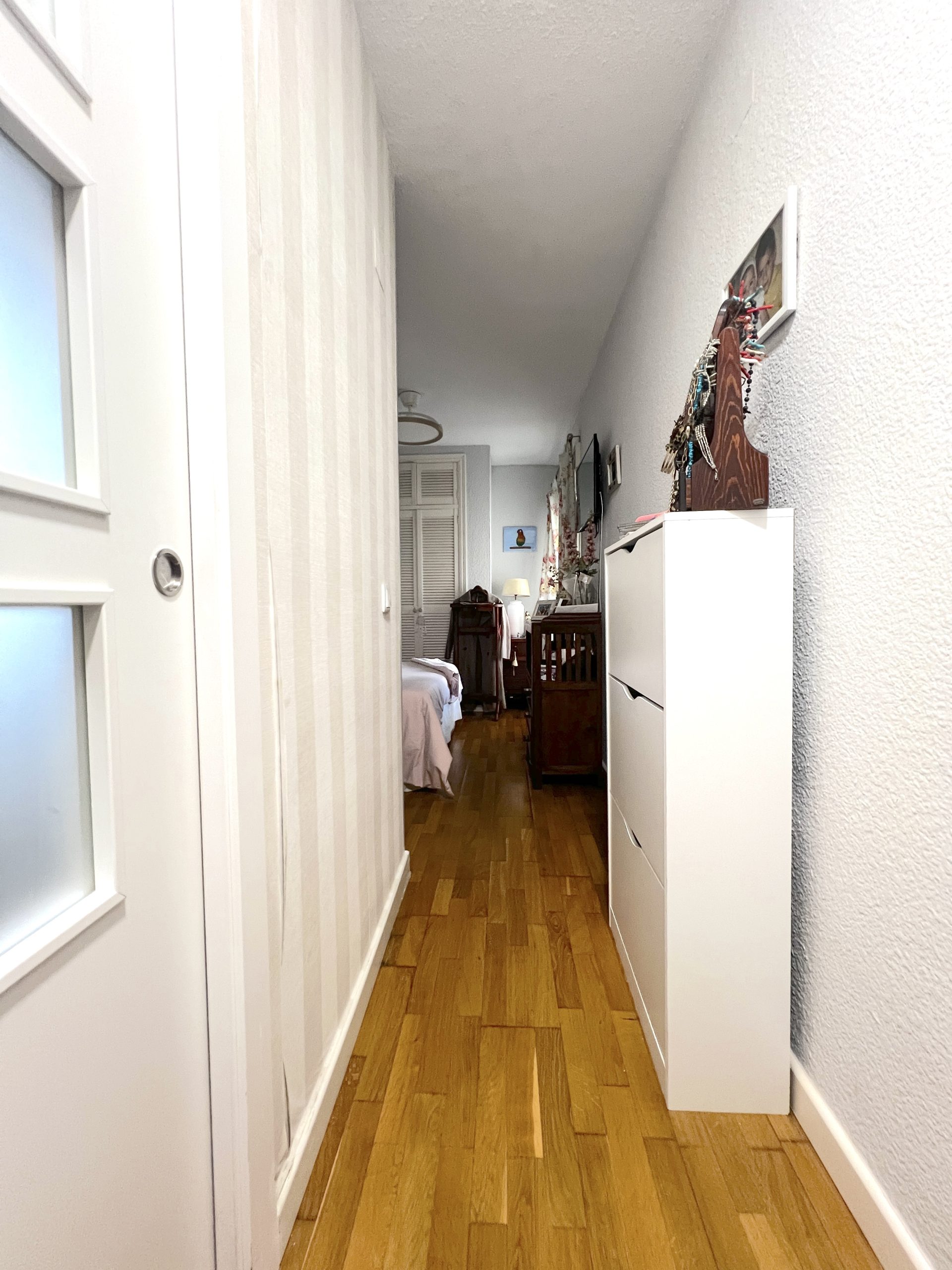 La vivienda cuenta con cuatro dormitorios, todos ellos espaciosos y versátiles, equipados con armarios empotrados, ideales tanto para familias como para quienes necesitan estancias adicionales para teletrabajo, invitados o zona de ocio. En el pasillo también encontramos un práctico armario empotrado, que aporta un extra de capacidad de almacenamiento.