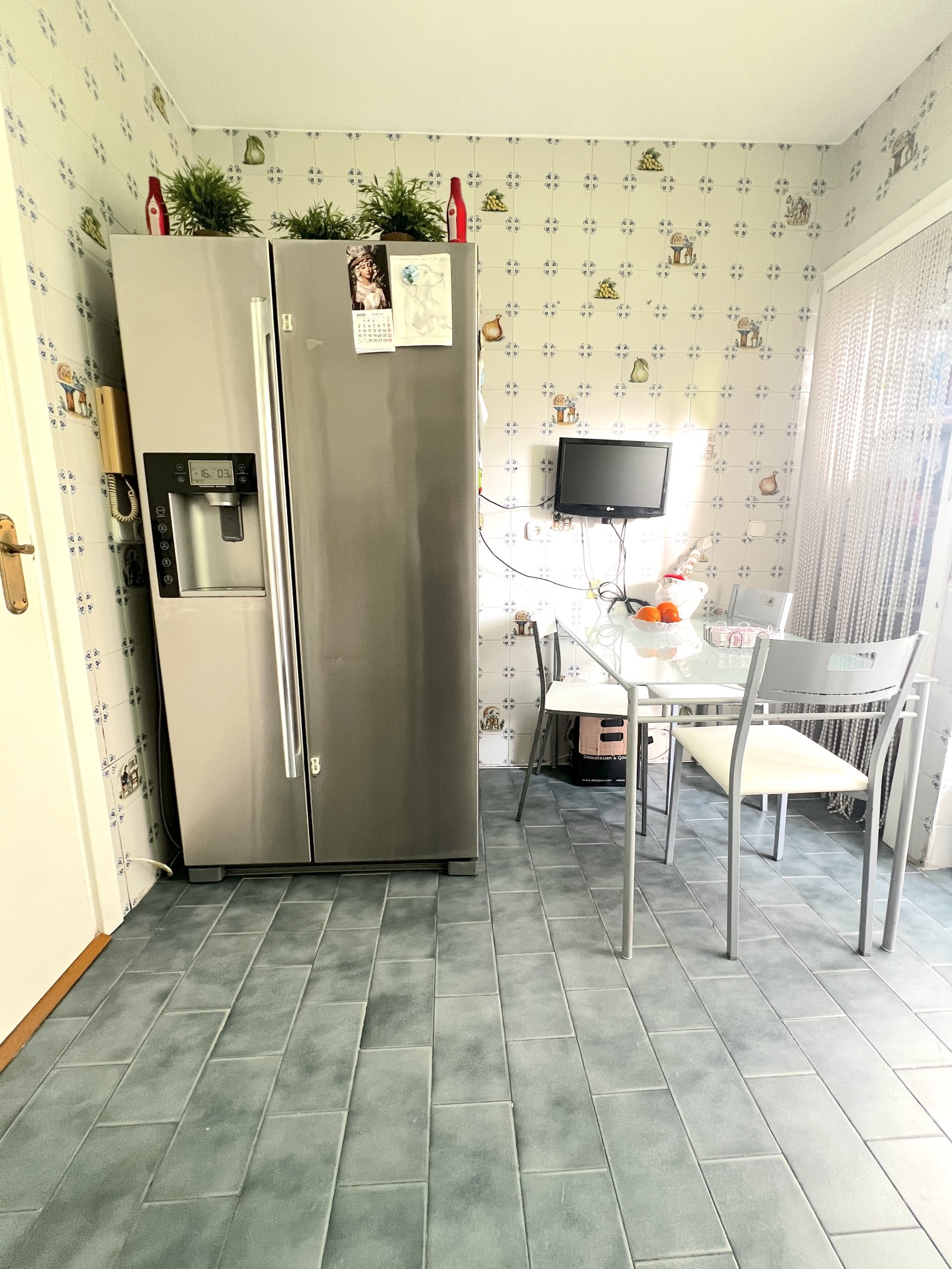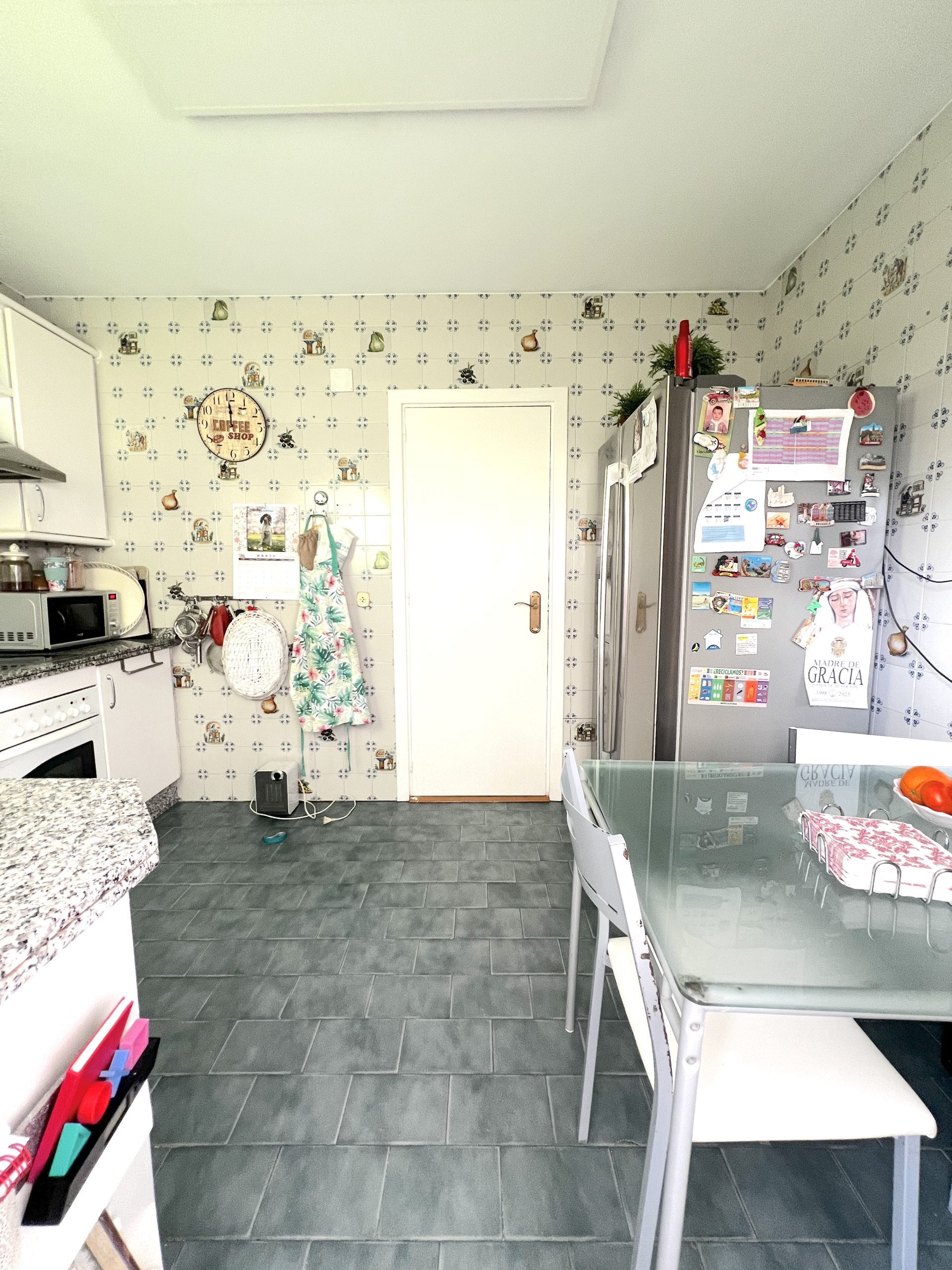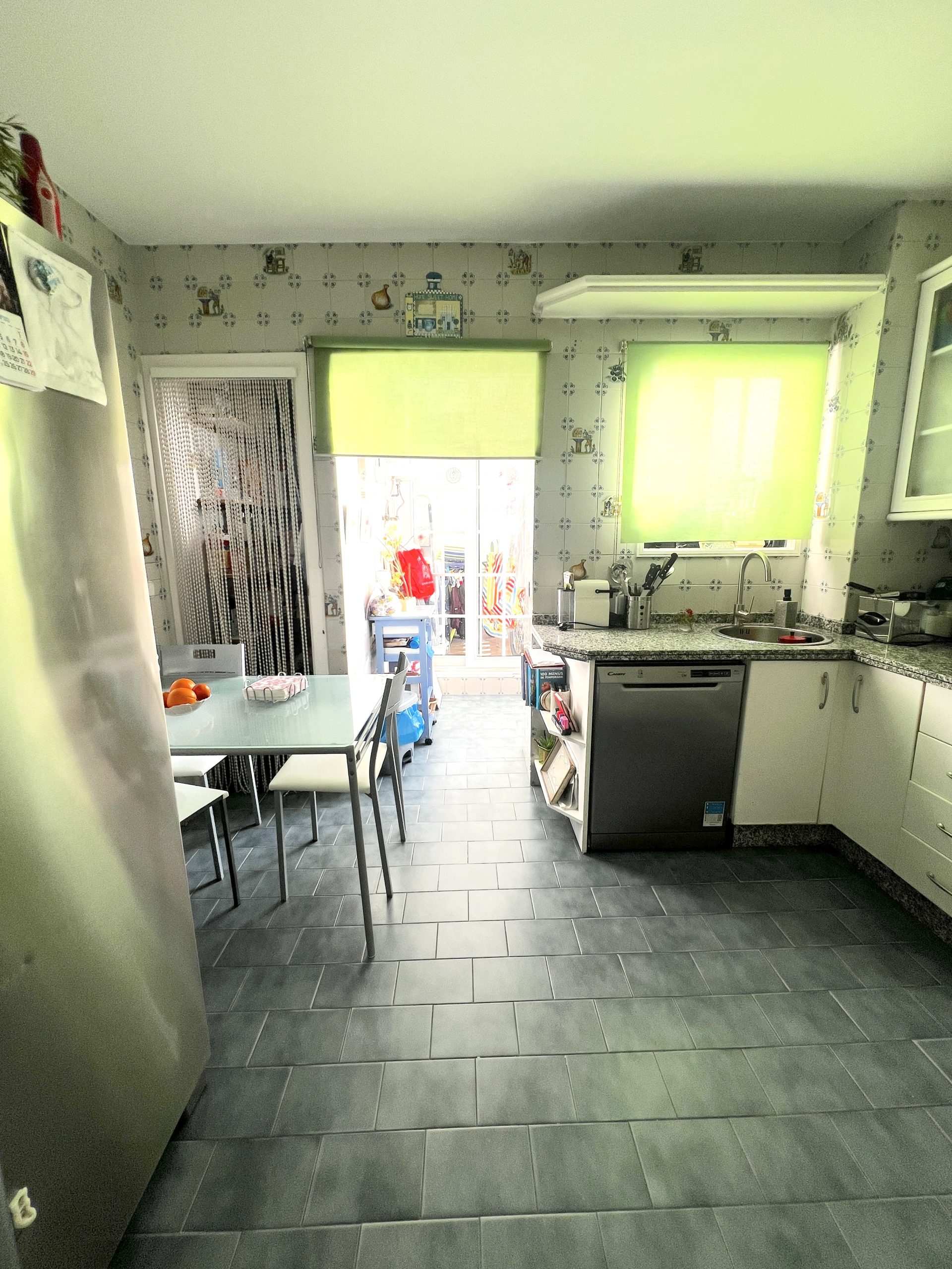 La vivienda dispone de una amplia cocina muy funcional, con abundante espacio de almacenaje y superficie suficiente para cocinar con comodidad. Cuenta además con espacio para mesa de comedor y una despensa de gran tamaño, lo que la convierte en una estancia muy práctica para el día a día. Desde la cocina se accede directamente a una zona de lavadero y a un patio.