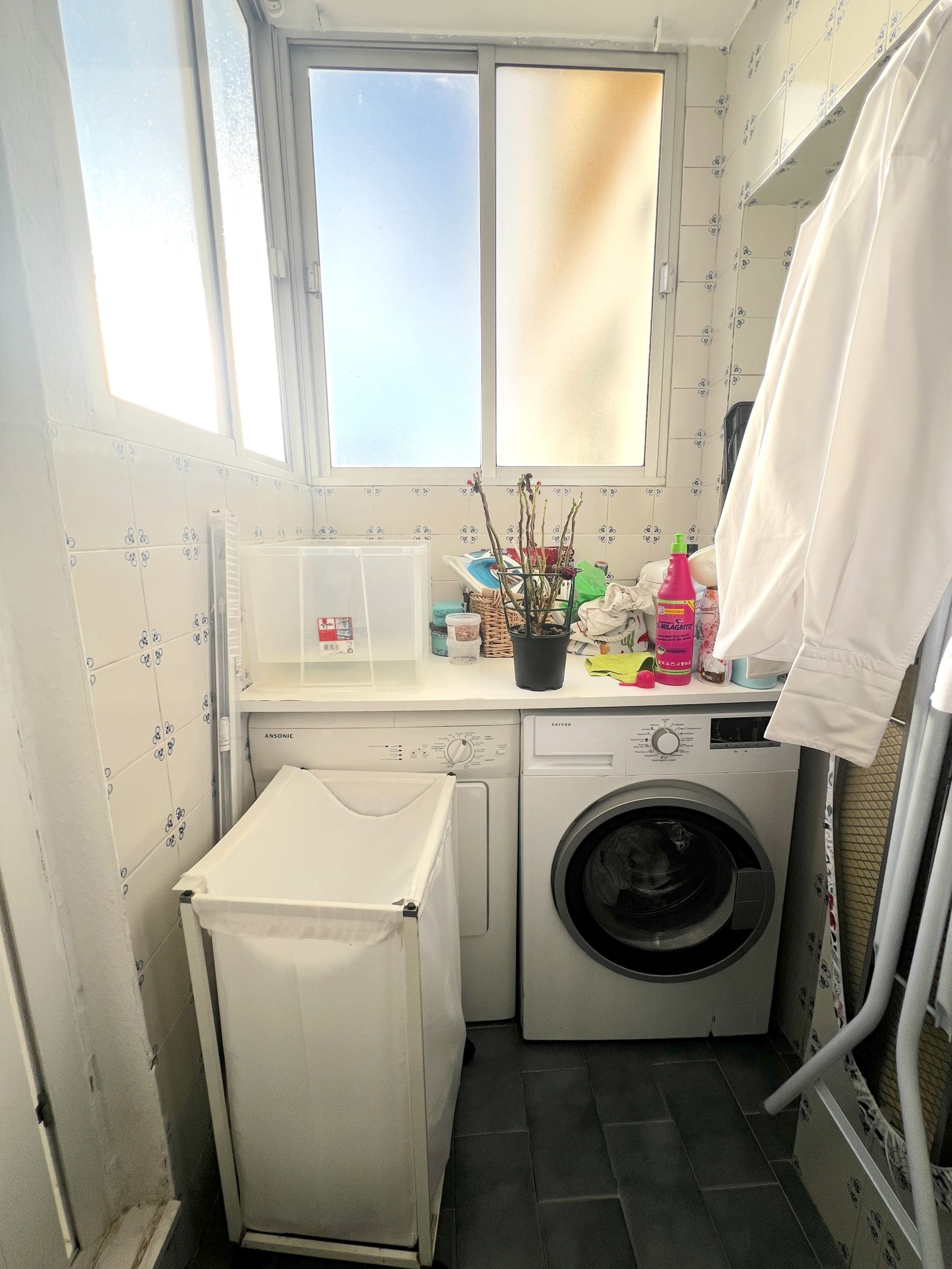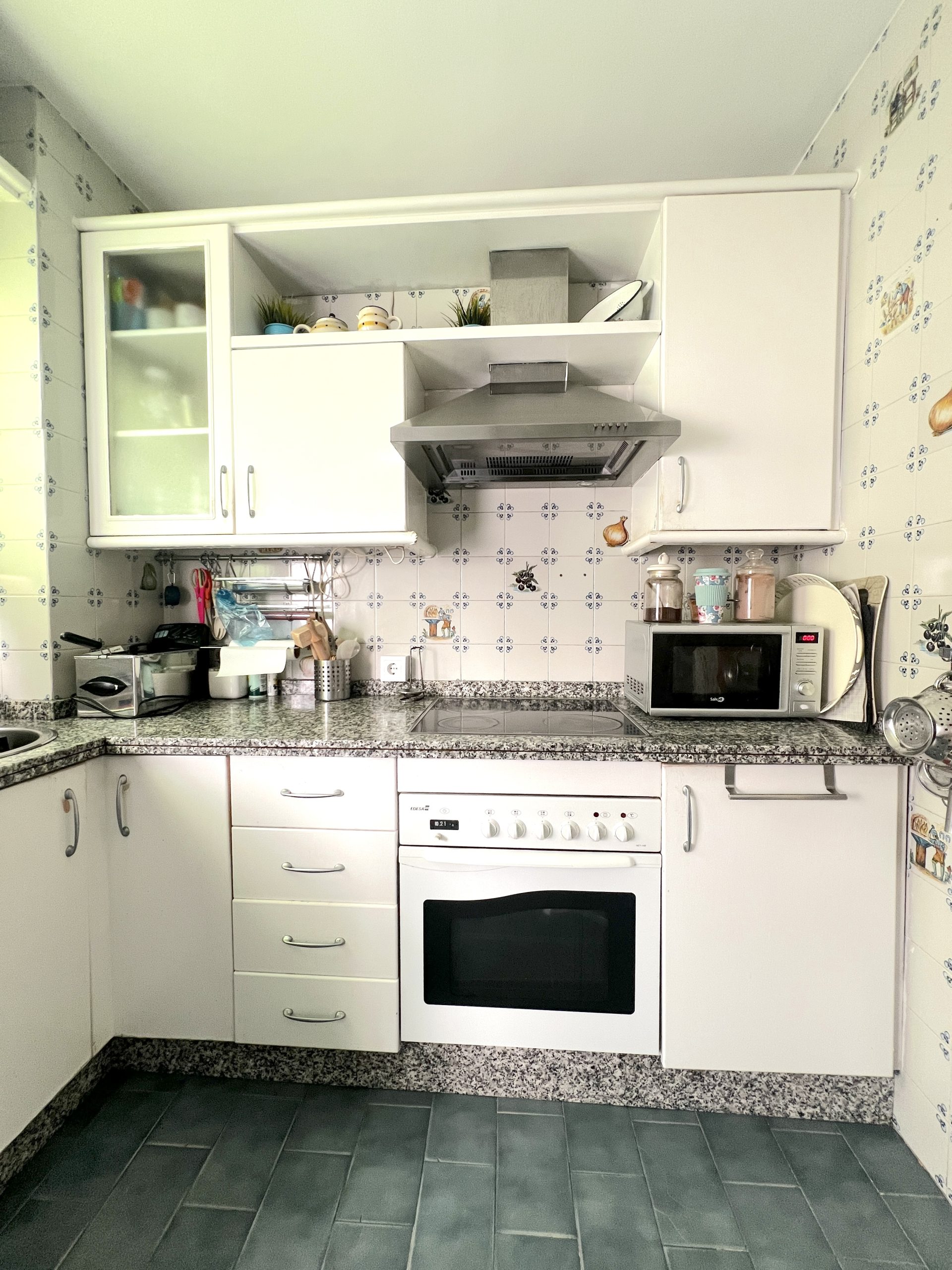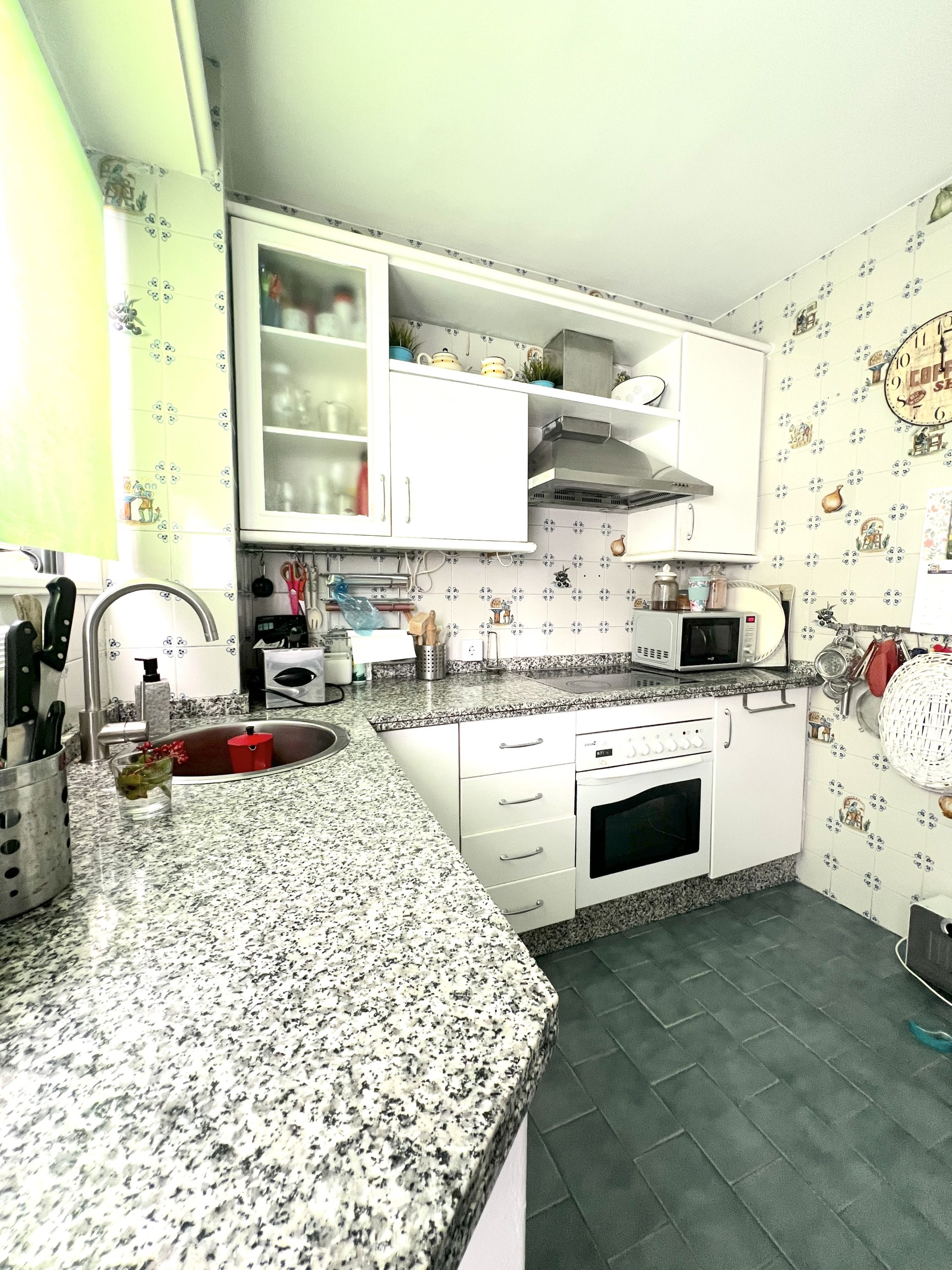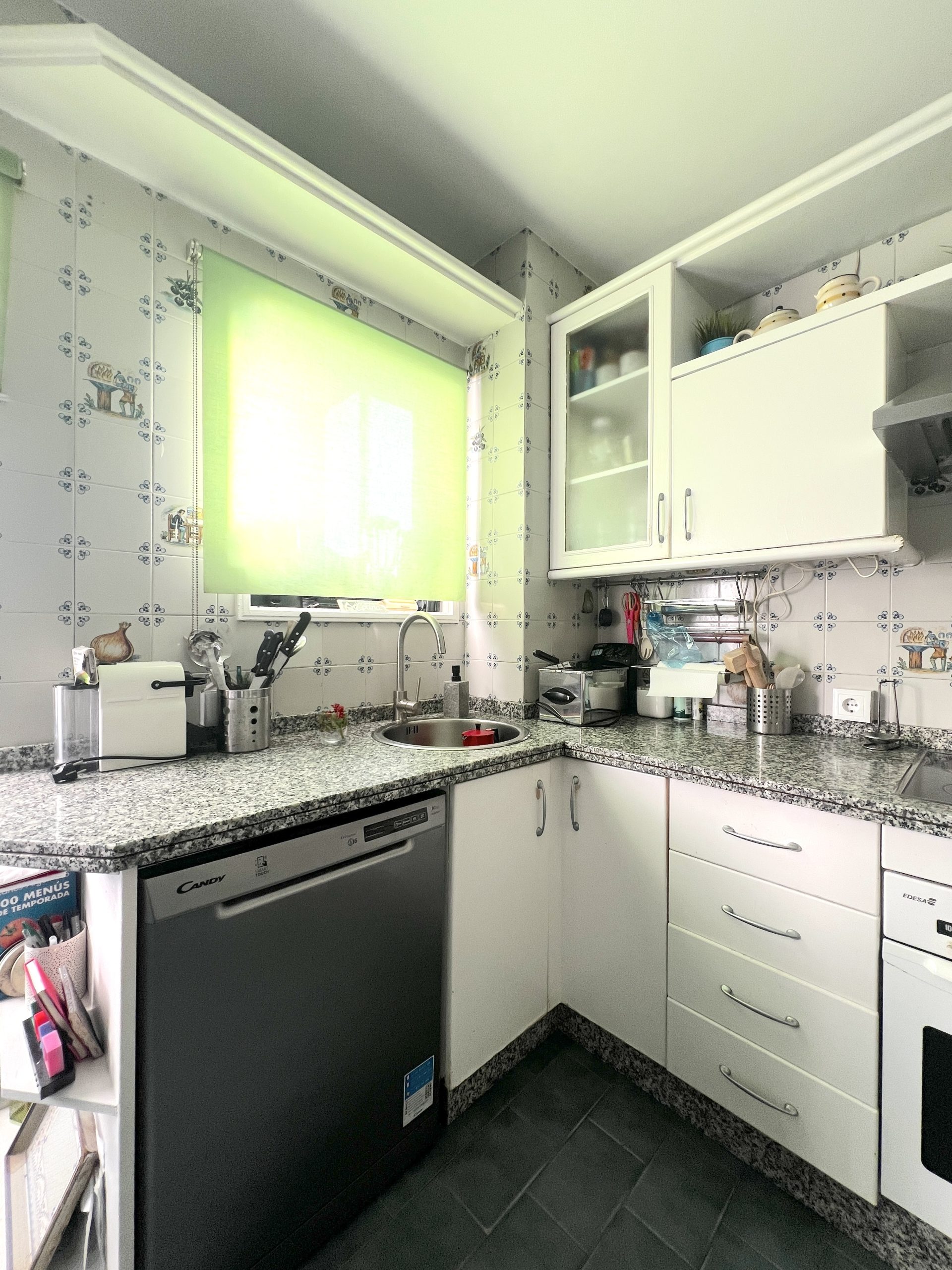 La vivienda dispone de una amplia cocina muy funcional, con abundante espacio de almacenaje y superficie suficiente para cocinar con comodidad. Cuenta además con espacio para mesa de comedor y una despensa de gran tamaño, lo que la convierte en una estancia muy práctica para el día a día. Desde la cocina se accede directamente a una zona de lavadero y a un patio.